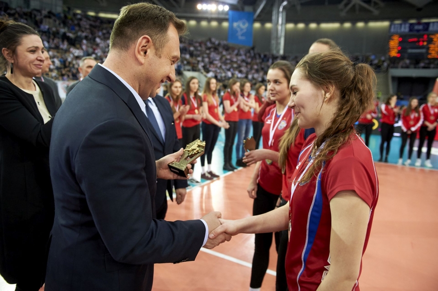 Medale na zakończenie spotkania oraz nagrody, m.in. dla najbardziej wartościowej zawodniczki spotkania, wręczał zawodniczkom Pierwszy Wiceprezydent Miasta Łodzi Tomasz Trela.