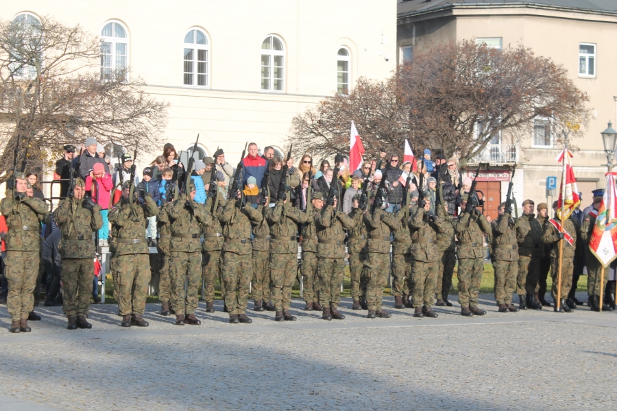 W czwartek  11 listopada  odbył się tu ceremoniał wojskowy , rozpoczęty złożeniem   przez dowódcę  Garnizonu Radom meldunku Wiceministrowi Obrony Narodowej Wojciechowi Skurkiewiczowi. W wypowiedzi  okolicznościowej W. Skurkiewicz  powiedział m.in. - Nieprzypadkowo od szeregu dni prowadzona jest akcja "Murem za polskim mundurem". To jest akcja wsparcia dla tych, którzy są na granicy, którzy zaraz mogą być na granicy, ale również dla ich rodzin. Zachęcam   do  wspierania  polskich żołnierzy, funkcjonariuszy straży granicznej, policji, gdyż oni na to zasługują. Służą  przecież Rzeczypospolitej, wypełniając słowa roty przysięgi.